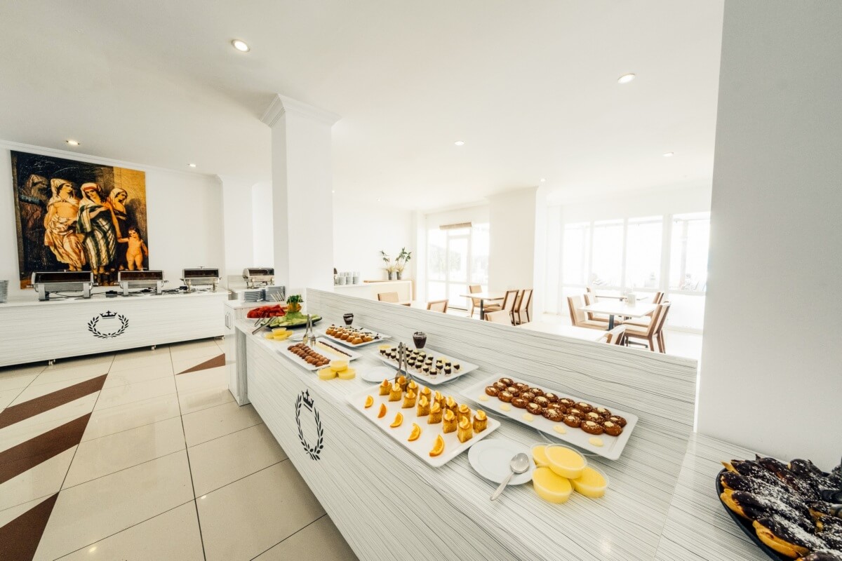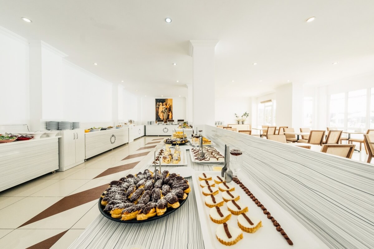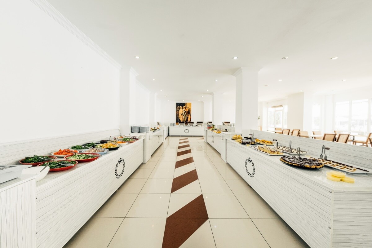Tesiste 1 adet restoran hizmet veriyor. Her şey dahil konaklamalarda; sabah, öğle ve akşam açık büfe yemekler ücretsizdir.